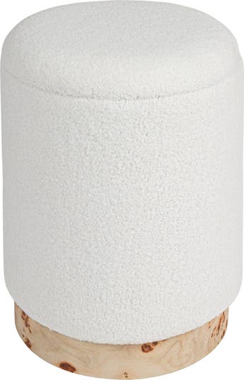 Round Boucle Upholstered Storage Stool with Removeable Lid, Cream