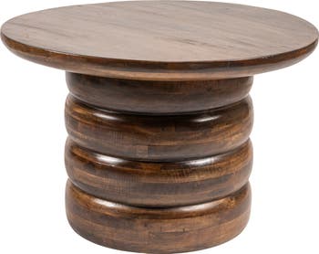 This Round Mango Wood Coffee Table features an over-sized ribbed base and a walnut finish, making it a stylish and functional addition to your living room. Perfect for use as a coffee table or accent table.