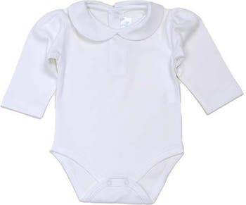 Buttery soft pima bodysuit with round collar and subtle puff sleeve. An essential basic for every infant wardrobe. Gentle enough for the most sensitive skin.