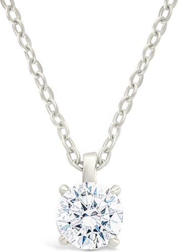 A signel cubic zirconia is suspended from an elegant chain necklace in high-shine sterling silver or 14-karat gold plate.