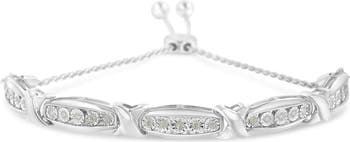Haus of Brilliance Round-Cut Diamond X & Tapered Bar Miracle-Set Bolo Bracelet - Silver, Alternate, color, White