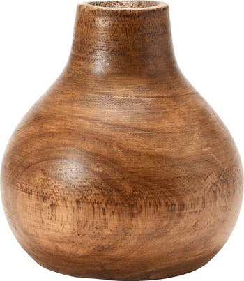 Add a touch of beauty and elegance to the home with this decorative paulownia wood tall vase. This vase is made of durable paulownia wood that is lightweight and durable. This vase has a brown color that gives it a warm and rustic look, and a narrow opening that creates a sleek and modern silhouette. Use this vase for fresh or dried flowers or branches, or even as a standalone piece. It will add charm and character to any space, whether placed on the windowsill, shelf, table, or floor. This vase has no holes at the bottom, so it can be easily moved around without worrying about water leakage. The vase measures 7.75 inches in diameter, and 8 inches tall. This decorative paulownia wood tall vase is a stunning and elegant way to display flowers or branches in any home.