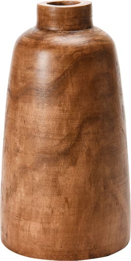 - This decorative paulownia wood tall vase has a brown color that gives it a warm and rustic look and a narrow opening that creates a sleek and modern silhouette