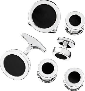 Jan Leslie Round Gemstone Inlay Sterling Cufflinks & Studs, Main, color, Black