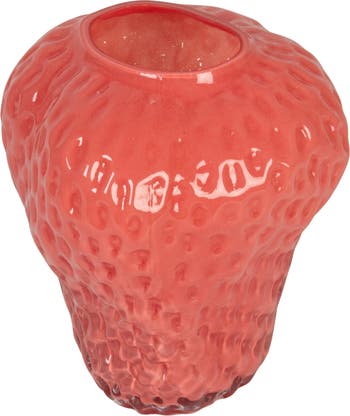This Round Glass Strawberry Shaped Vase in pink is a delightful addition to any home. Crafted from durable glass, this vase features a whimsical strawberry shape that complements farmhouse, French country, cabin, and garden decor. Perfect for displaying fresh flowers or dried arrangements or as a standalone decorative piece, it adds a touch of charm to any room. Made of durable and easy-to-clean glass, this vase measures 6.25 inches in diameter and 6.75 inches in height. The vibrant pink color adds color to any space, making it a versatile and eye-catching piece. Whether placed on a mantel, shelf, or dining table, this strawberry-shaped vase will surely be a conversation starter in the home.