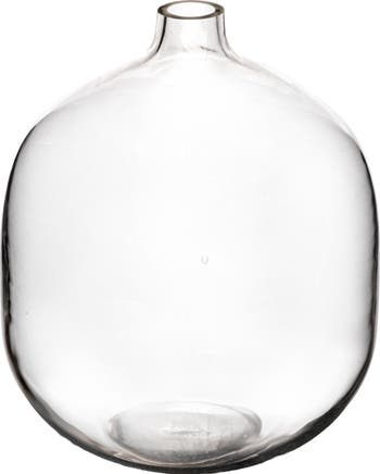 - This vase is a simple and elegant piece of glassware that features a round shape and a narrow lip