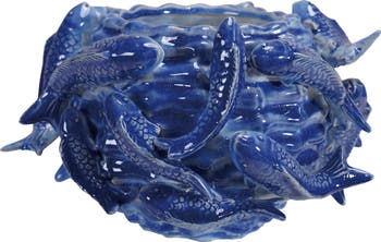 Storied Home Round Handmade Stoneware Planter with 3D Fish in Reactive Glaze, Blue, Main, color, Blue