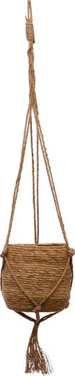 - Features a 33-inch jute hanger with a tassel and holds an 8-inch pot