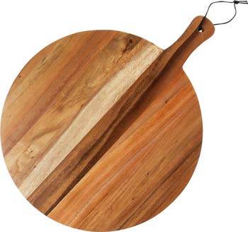 Round Large Suar Wood Cutting Board with Handle, Natural
