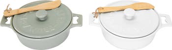 Round Lidded Stoneware Brie Bakers with Wood Spreaders