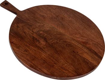 Round Mango Wood Cheese/Cutting Board with Handle, Walnut Finish