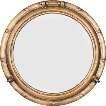 Round Metal Porthole Wall Mirror, Gold