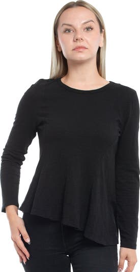 Round Neck Long Sleeve Tee with Asymmetric Hem & Body Seams
