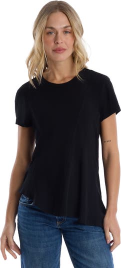 Round Neck Short Sleeve Tee with Asymmetric Hem and Body Seams Designed in our signature slub fabrication, this tee combines everyday comfort with modern detailing. The asymmetric hem and body seam accents add a touch of edge to a classic silhouette. 100% Cotton Signature slub jersey fabrication Imported Machine washable Model is wearing a size Small