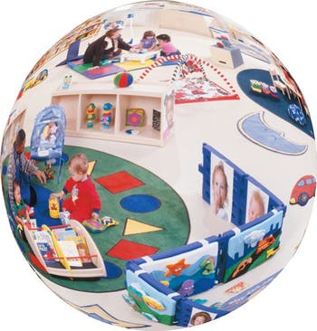 Be able to see the children at all times! This shatter resistant, wide angle mirror eliminates blind spots and enhances visibility. Lightweight and fade resistant. Convex mirrors and mirrored domes provide a view around corners. Easy installation. Measures 18" across. Mounting Z bracket and hardware inlcuded. Indoor use only.