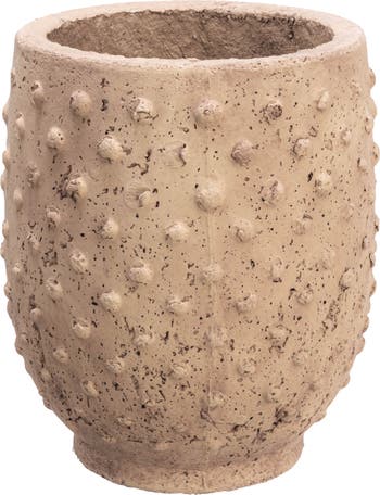 Round Sandstone Hobnail Planter with Distressed Finish, Greige