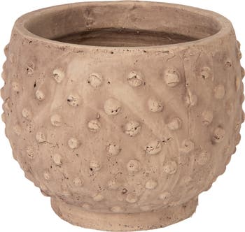 Round Sandstone Hobnail Planter with Distressed Finish, Greige