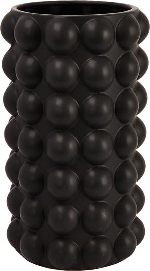Contrast and sophistication are added to any home with this matte charcoal stoneware umbrella holder/vase. This round umbrella holder/vase features raised dots that create a subtle texture and a matte charcoal finish that gives it a sleek and stylish look. This umbrella holder/vase does not have drainage holes, so it can be used as a decorative vase for fresh or artificial flowers, or as an umbrella holder for wet or dry umbrellas. This umbrella holder/vase is made of durable stoneware, which is a durable and sturdy material that can resist chipping and cracking. This umbrella holder/vase measures 9.25 inches in diameter and 16.25 inches in height, making it a spacious and elegant piece that can hold multiple umbrellas or a large bouquet of flowers. Whether placed near the door, in the hallway, or in the living room, this matte charcoal stoneware umbrella holder/vase adds a modern touch to any home.