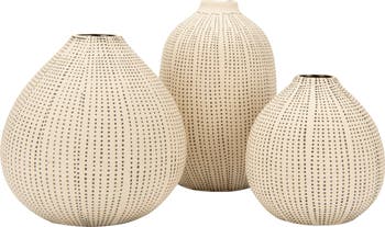 Round Stoneware Vases with Polka Dot Finish, White and Black, Set of 3