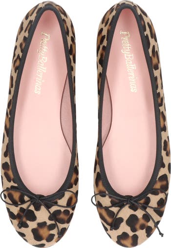 Round toe ballet flat in soft leopard printed poni leather