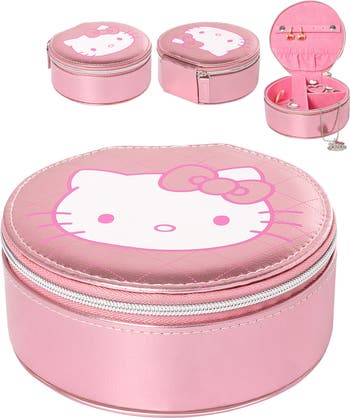 Keep your precious accessories safe and stylish with the Hello Kitty Round Travel Jewelry Case. This adorable case features a quilted pink exterior with Hello Kitty’s iconic face printed on the front. Compact and convenient, it’s perfect for storing rings, earrings, necklaces, and more while on the go. Whether you're traveling or organizing your jewelry at home, this case is as functional as it is fashionable.