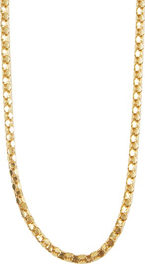 Rounded links lend a tubular twist to this sterling silver box chain necklace plated in polished 18-karat gold.
