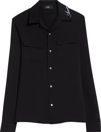 A house script logo—a recurring element in the pre-spring '26 collection— pops at the collar of this button-up shirt detailed with rounded-corner flap pockets.