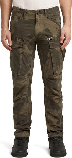 Nonstretch camo-patterned pants in a tapered profile rock a modern, utilitarian look with cargo-style pockets and taping at the lower legs for a tighter fit around the ankles.