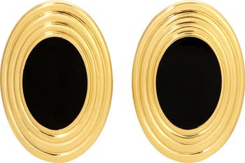 Simply classic. The Rowan Earrings features an oval statement silhouette with enamel center and gold-plated textured frame. This is timeless elegance—the kind of earrings that work effortlessly from day to night, casual to polished. The textured gold frame adds subtle dimension while the smooth enamel center creates striking contrast. Bold enough to make a statement, refined enough to feel classic and wearable. These are the earrings you'll reach for when you want to look polished without overthinking it. Available with black enamel or brown enamel centers. Because classic never goes out of style.