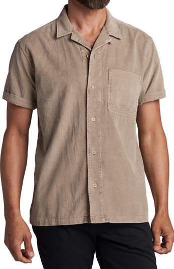 Finely textured cotton corduroy defines a stylish shirt with versatile appeal.