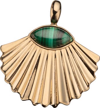 Set with a polished malachite cabochon, this fluted fan-shaped charm brings a grounded yet elevated feel to any chain.