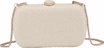 - Exterior Details: Woven Design, Structured Shape, Gold Hardware, Detachable Chain Strap