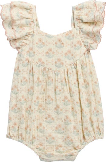 Your little darling will stay comfy and cute in this gauzy cotton bodysuit framed with layered flutter sleeves.