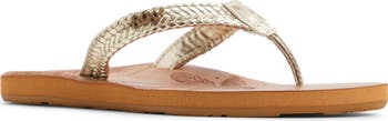 Logo hardware adds extra polish and brands the woven metallic straps of this easygoing flip-flop.