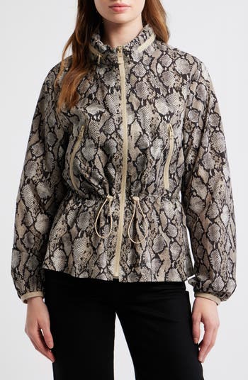 This lightweight jacket made from crinkled fabric with a bold snake print is water-repellent, windproof and breathable.
