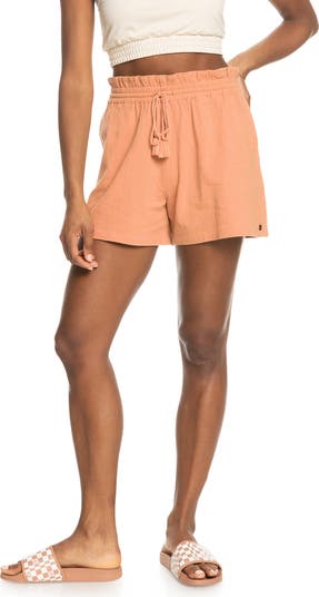 Start or finish a beach day in crinkled cotton shorts tied with a tasseled drawstring.