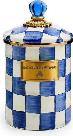 Stash your pantry staples in the hand-painted color-dragged checks of this canister that gives your shelves or counters plenty of panache and personality.