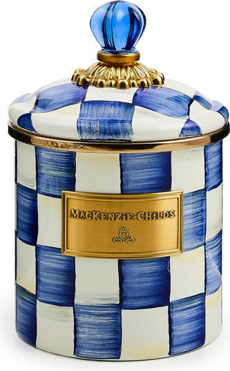 Hand-painted color-dragged checks in an energizing hue that celebrates new beginnings brightens this enameled-steel canister you'll love displaying on your counter as it stores your favorite pantry staples.