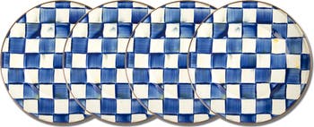Artisanal craftsmanship reigns supreme as you create a stunning tabletop spread with this regal set of heavy-gauge steel dinner plates glazed with hand-painted, color-dragged checks.