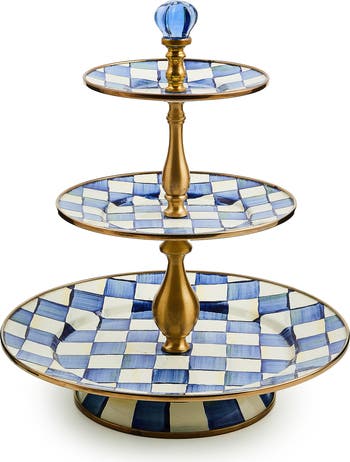 Hand-painted checks and a coordinating knob top are anything but basic on this enameled-steel stand that provides three tiers to display your sweetest treats.
