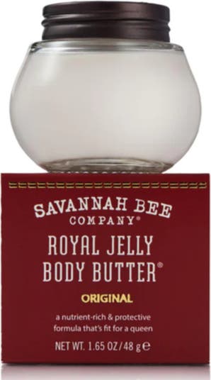 Our Original Royal Jelly Body Butter glides on with the sweet smell of wild blackberries, velvety vanilla, and hints of gardenia for the ultimate skin-quenching treat. Rose clay lends a light pink hue and removes impurities, while deep moisture and nourishing antioxidants come from royal jelly harvested from the queen's own chamber. Worker bees secrete super-nutritious royal jelly to sustain developing larvae and feed the queen.