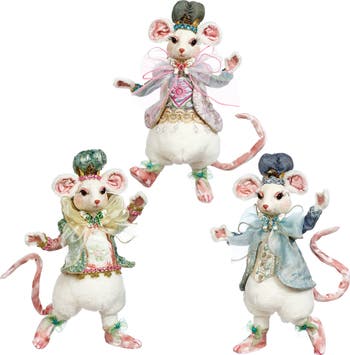 This Mark Roberts Royal Palace Mice 12" Set of 3 features three elegant mice dressed in regal palace attire with rich fabrics and intricate detailing. Each figure showcases Mark Roberts’ signature craftsmanship, including hand-finished costumes and charming accessories. Perfect for holiday décor or collectible displays, this set adds a touch of whimsical luxury to any space.