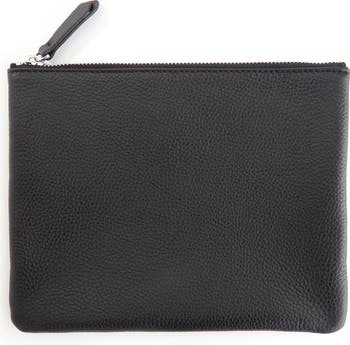 Safely store all of your daily essentials in a slim, easy-to-carry leather pouch that features a convenient interior wall pocket for extra organization.