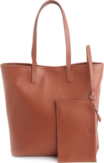 Richly pebbled leather elevates the look and feel of a spacious monogram tote that's an ideal way to store all your essentials with a personalized touch. It also comes with a zip-top wristlet that you can be carried solo or used for extra storage in the handbag.