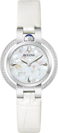 BULOVA Rubaiyat Sapphire Leather Strap Watch, 30mm, Alternate, color, Silver-Tone