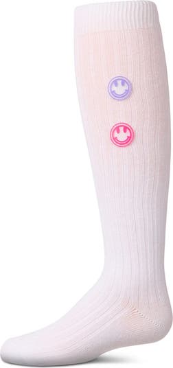 Talk about trendy. Our rib-knit girls' knee socks come stylishly trimmed with 2 rubber smiley emojis, so she'll always look charmingly cheerful everywhere she goes. The super-soft cotton-rich knit stretches for all-day ease, while the smooth hand-linked toe seams help prevent itchy chafing.