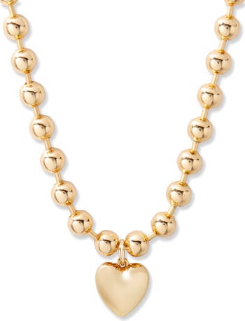 A strand of ball links brings bright shine to a necklace modernized by a polished heart pendant.