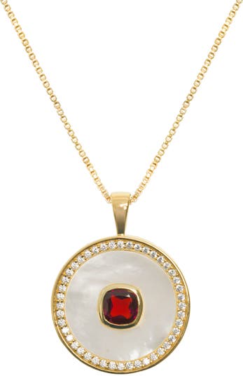 Bold yet feminine, an opaque ruby sits at the heart of our Ruby Mother of Pearl Necklace, which is set into a beautiful Mother of Pearl disk surrounded by a ring of White Zircon. Made in 18ct Gold vermeil over Sterling Silver, this July birthstone symbolises love and strength. A striking yet soft piece designed to carry personal meaning, and is the perfect gift to mark an important date or occasion.