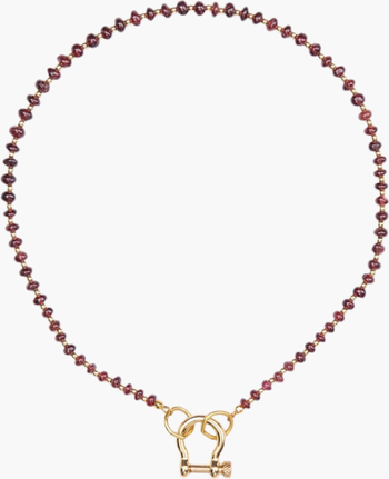 Elevate your style with this exquisite 17-inch garnet necklace featuring 14k gold plated hardware and a secure carabiner clasp. Perfect for adding a touch of elegance to any outfit.