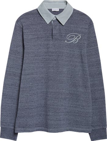 With its relaxed cut and cotton mouliné jersey, this rugby polo leans into texture-first style that still feels clean. The crisp poplin collar and concealed placket bring a tailored finish, then the cursive embroidered initial adds a final flourish.